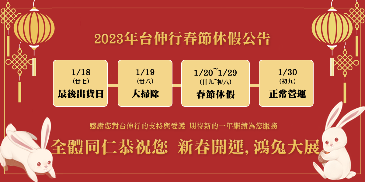 ■農曆春節休假日:1/20(廿九)~1/29(初八)